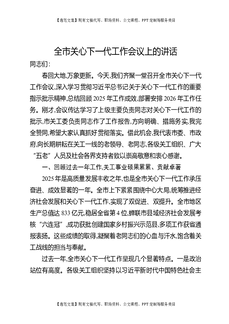 全市关心下一代工作会议上的讲话.docx