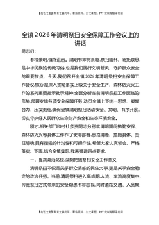 全镇2026年清明祭扫安全保障工作会议上的讲话.docx