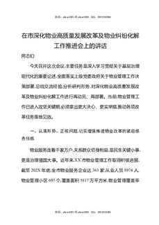 在市深化物业高质量发展改革及物业纠纷化解工作推进会上的讲话.docx