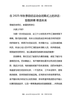 在2025年秋季田径运动会闭幕式上的讲话:致敬拼搏,寄语未来.docx