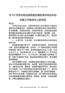 在XX市深化物业高质量发展改革及物业纠纷化解工作推进会上的讲话.docx