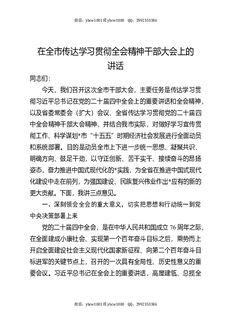 在全市传达学习贯彻全会精神干部大会上的讲话.docx