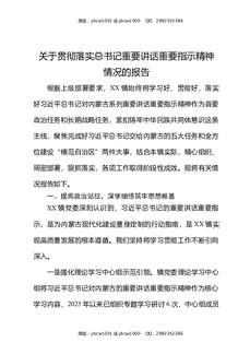 关于贯彻落实总书记重要讲话重要指示精神情况的报告.docx