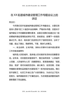 在XX街道城市建设管理工作专题会议上的讲话.docx