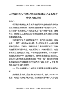 人民政府在全市优化营商环境暨深化改革推进大会上的讲话.docx