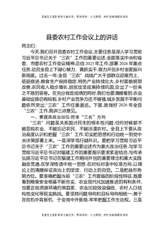 县委农村工作会议上的讲话.docx