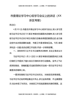 市委理论学习中心组学习会议上的讲话(XX新区考察).docx