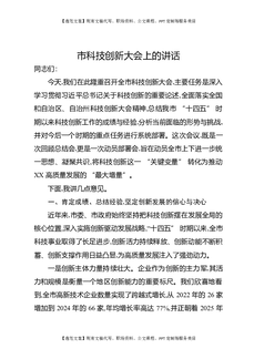 市科技创新大会上的讲话.docx