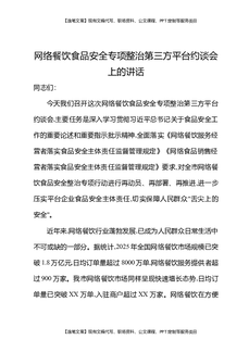 网络餐饮食品安全专项整治第三方平台约谈会上的讲话.docx