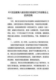 XX区创建第八届全国文明城市工作部署会上的讲话稿.docx