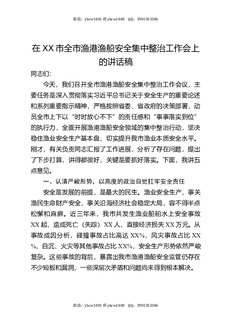 在XX市全市渔港渔船安全集中整治工作会上的讲话稿.docx
