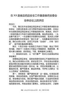 在XX县食品药品安全工作暨县食药安委会全体会议上的讲话.docx