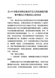 在XX市委全市群众身边不正之风和腐败问题集中整治工作推进会上的讲话.docx