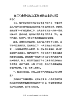 在XX市无偿献血工作推进会上的讲话.docx