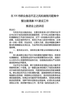 在XX市群众身边不正之风和腐败问题集中整治暨清廉XX建设工作推进会上的讲话.docx