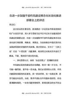 在进一步加强干部作风建设常态化长效化推进部署会上的讲话.docx