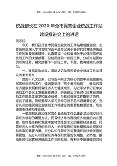 统战部长在202X年全市民营企业统战工作站建设推进会上的讲话.doc