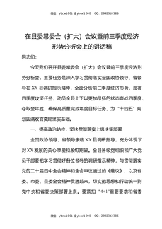 在县委常委会扩大会议暨前三季度经济形势分析会上的讲话稿.docx