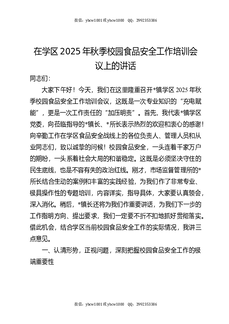 在学区2025年秋季校园食品安全工作培训会议上的讲话.docx