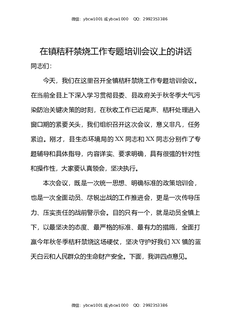 在镇秸秆禁烧工作专题培训会议上的讲话.docx