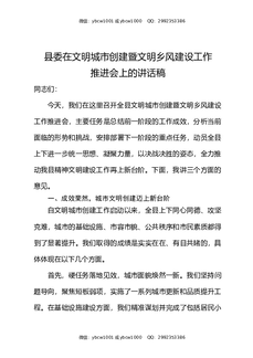 县委在文明城市创建暨文明乡风建设工作推进会上的讲话稿.docx