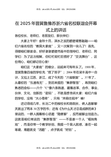 在2025年晋冀鲁豫苏浙六省名校联谊会开幕式上的讲话.docx