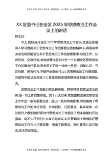 XX区委书记在全区2025年思想政治工作会议上的讲话.docx