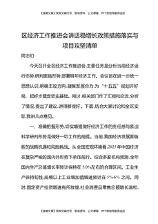 区经济工作推进会讲话稳增长政策措施落实与项目攻坚清单.docx
