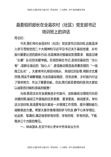 县委组织部长在全县农村(社区)党支部书记培训班上的讲话.docx