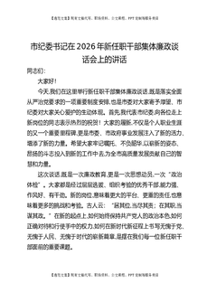 市纪委书记在2026年新任职干部集体廉政谈话会上的讲话.docx