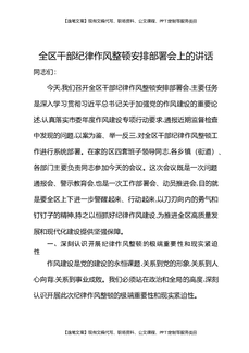 全区干部纪律作风整顿安排部署会上的讲话.docx