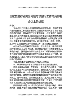 全区旅游行业突出问题专项整治工作动员部署会议上的讲话.docx