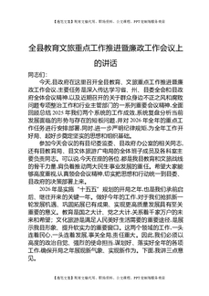 全县教育文旅重点工作推进暨廉政工作会议上的讲话.docx