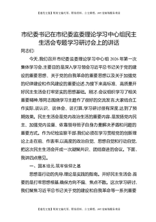 市纪委书记在市纪委监委理论学习中心组民主生活会专题学习研讨会上的讲话.docx