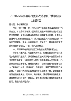 在2025年小区电梯更新改造项目户代表会议上的讲话.docx