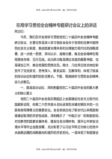 在局学习贯彻全会精神专题研讨会议上的讲话.docx