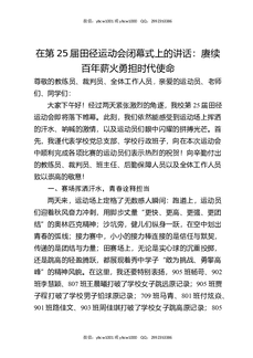 在第25届田径运动会闭幕式上的讲话:赓续百年薪火,勇担时代使命.docx