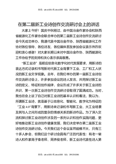 在第二届新工业诗创作交流研讨会上的讲话.docx