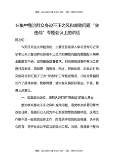 在集中整治群众身边不正之风和腐败问题突击战专题会议上的讲话.docx