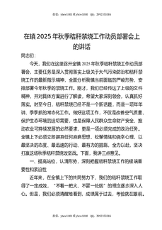 在镇2025年秋季秸秆禁烧工作动员部署会上的讲话.docx