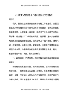 在镇主动创稳工作推进会上的讲话.docx
