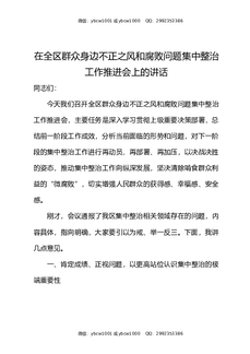 在全区群众身边不正之风和腐败问题集中整治工作推进会上的讲话.docx