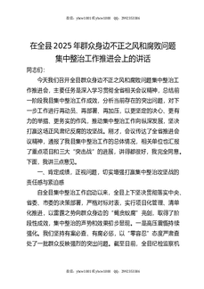 在全县2025年群众身边不正之风和腐败问题集中整治工作推进会上的讲话.docx
