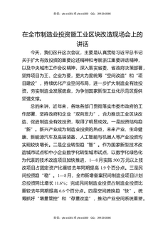 在全市制造业投资暨工业区块改造现场会上的讲话.docx