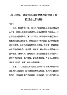 县卫健局在紧密型县域医共体医疗管理工作推进会上的讲话.docx