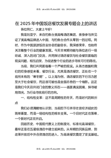 在2025年中国饭店餐饮发展专题会上的讲话.docx