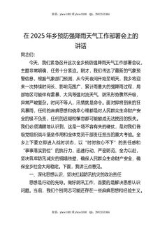 在2025年乡预防强降雨天气工作部署会上的讲话.docx