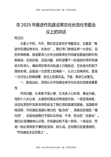 在2025年推进作风建设常态化长效化专题会议上的讲话.docx