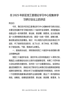 在2025年新区党工委理论学习中心组集体学习研讨会议上的讲话.docx