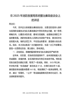 在2025年消防救援局系统整治廉政座谈会上的讲话.docx